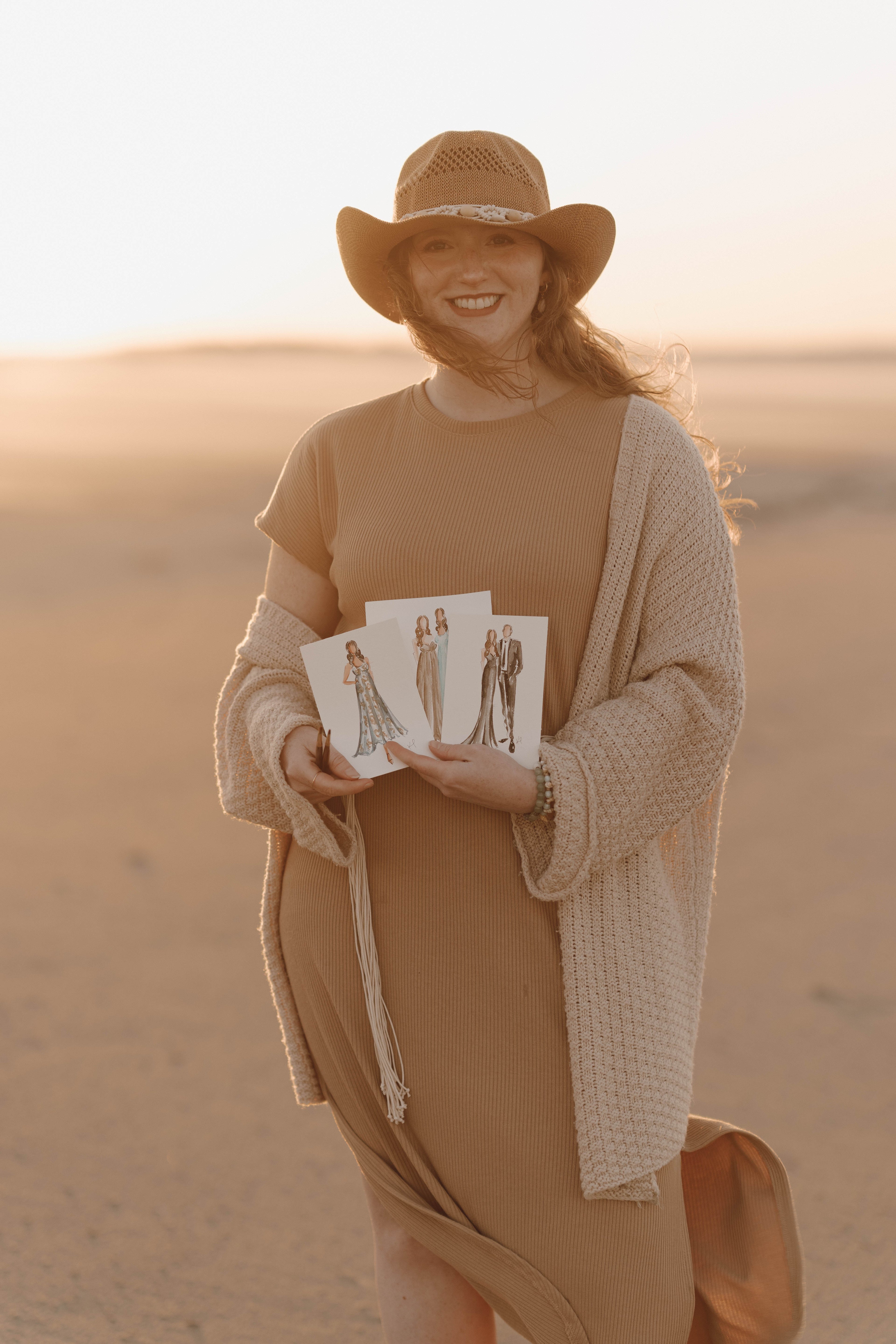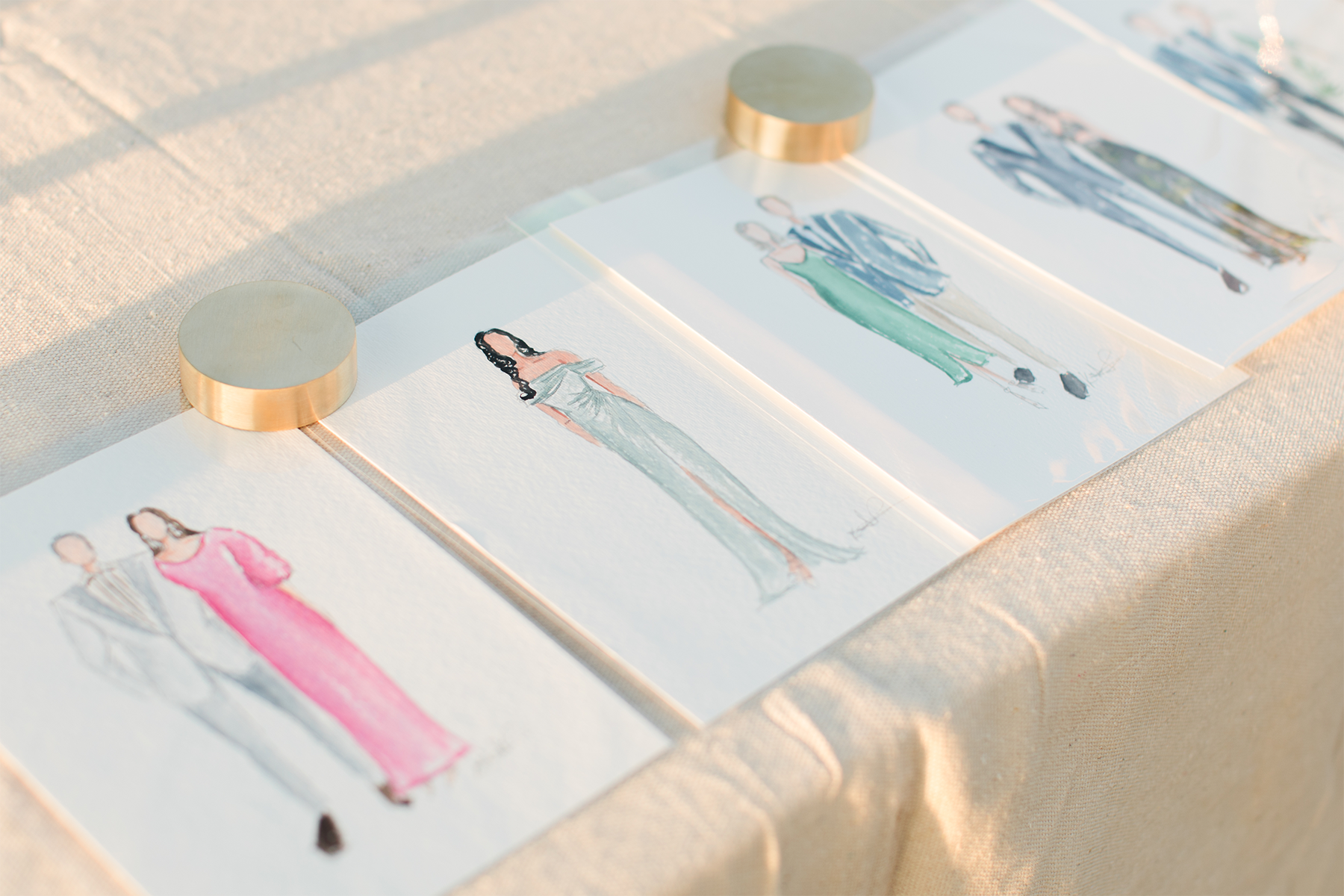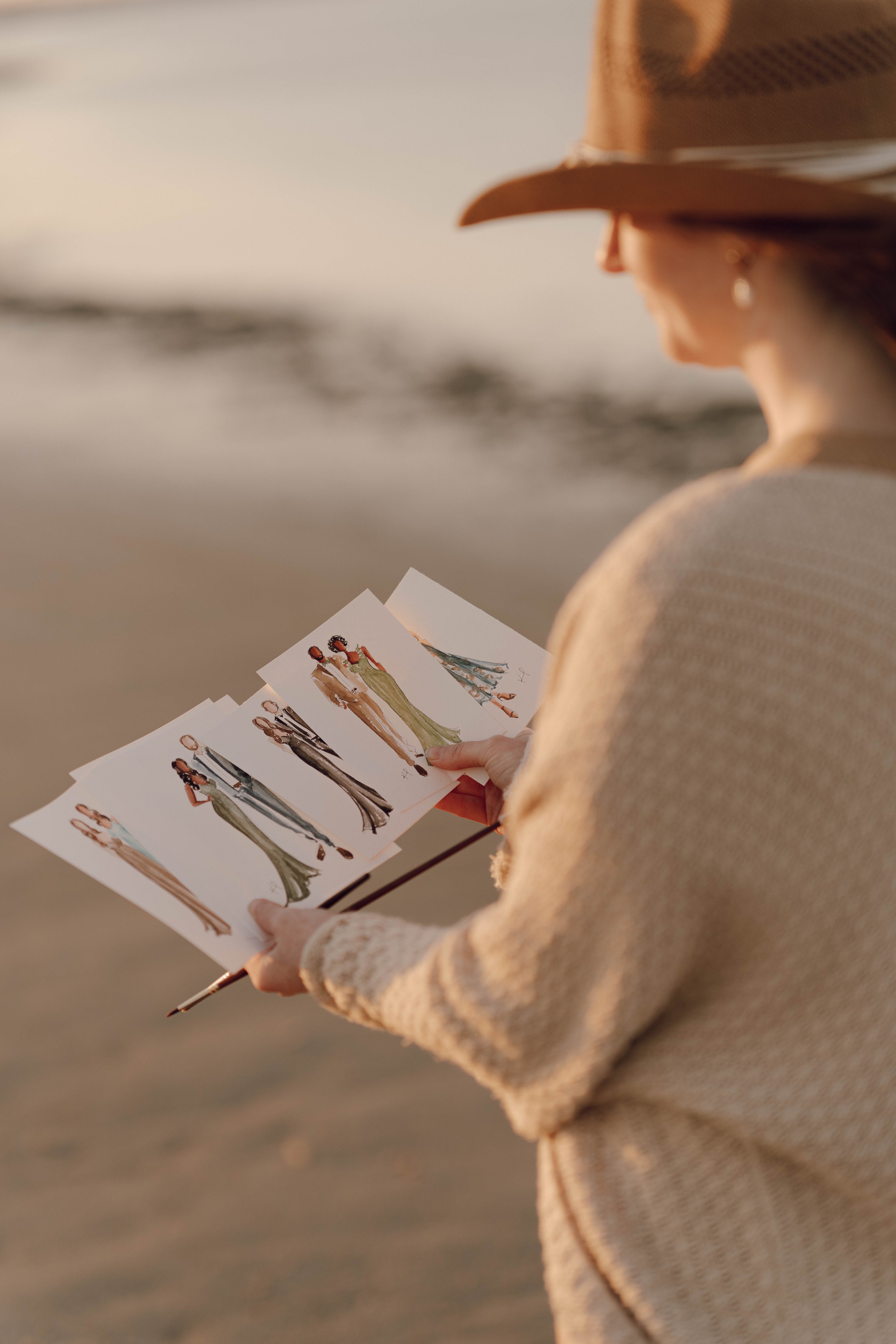 Hand painted guest portrait illustrations that double as interactive entertainment + personalized favors by capturing full body details of each guest in under 10 minutes, using professional grade watercolors + materials.